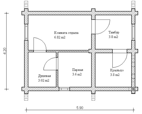 При рисовании собственного проекта бани стоит сразу учитывать не только высоту стен, но так же и высоту окон и дверных проемов.