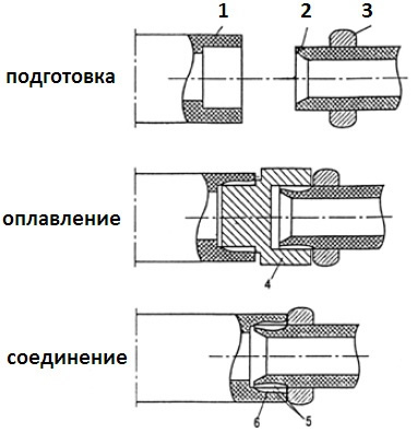 После нагревания детали необходимо одновременно снять и соединить. Нельзя вращать их, иначе не удастся получить монолитное соединение.