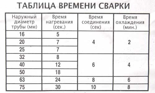 Сварка полипропиленовых труб большого диаметра потребует нагрева до 50 секунд, а время соединения должно составлять 12 секунд.