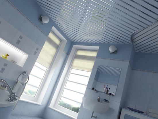 Не менее распространены алюминиевые реечные потолки для ванной.