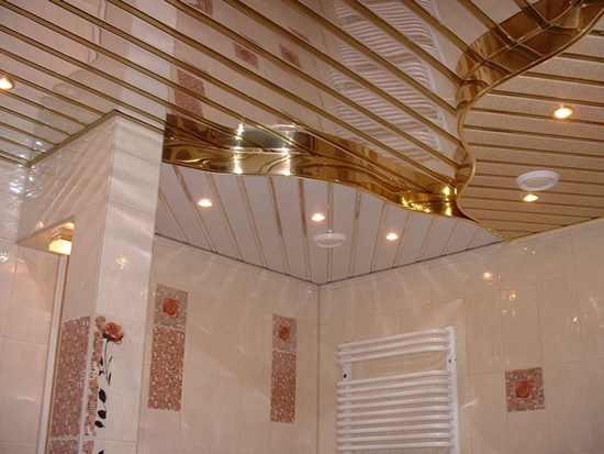 Если было принято решение монтировать подвесной реечный потолок в ванной, в первую очередь нужно поставить вопрос и дать ответ, из каких материалов он должен быть изготовлен.