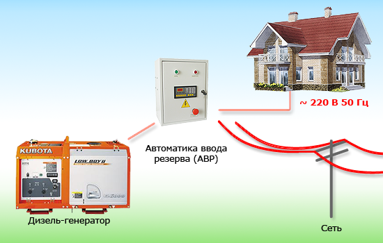 Стандартный комплект резервного электроснабжения включает в себя следующие составляющие: