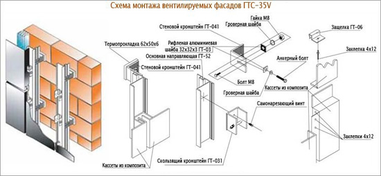 Полностью разобрав структуру системы, можно подумать, как проще осуществить монтаж вентилируемого фасада из керамогранита.