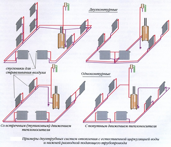Ниже представлены схемы водяного отопления частного дома.